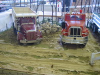 Ayant acquis trois maquettes d'un ami qui se séparait de son stock 1/24e, deux dépanneuses et un camion « en panne », j’ai eu l’idée de les mettre en situation. Mais comme j’ai la fâcheuse manie de m’y prendre toujours au dernier moment avant une exposition, soit quelques jours avant l’échéance, il me fallait trouver quelque chose de facile et surtout rapide à réaliser. Ne recherchez pas dans ce cas-ci le réalisme absolu dans l’aspect et la présentation, il s’agit simplement d’une mise en situation. Un diorama provisoire, en quelque sorte.